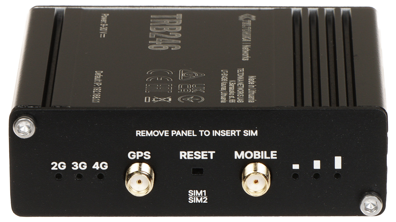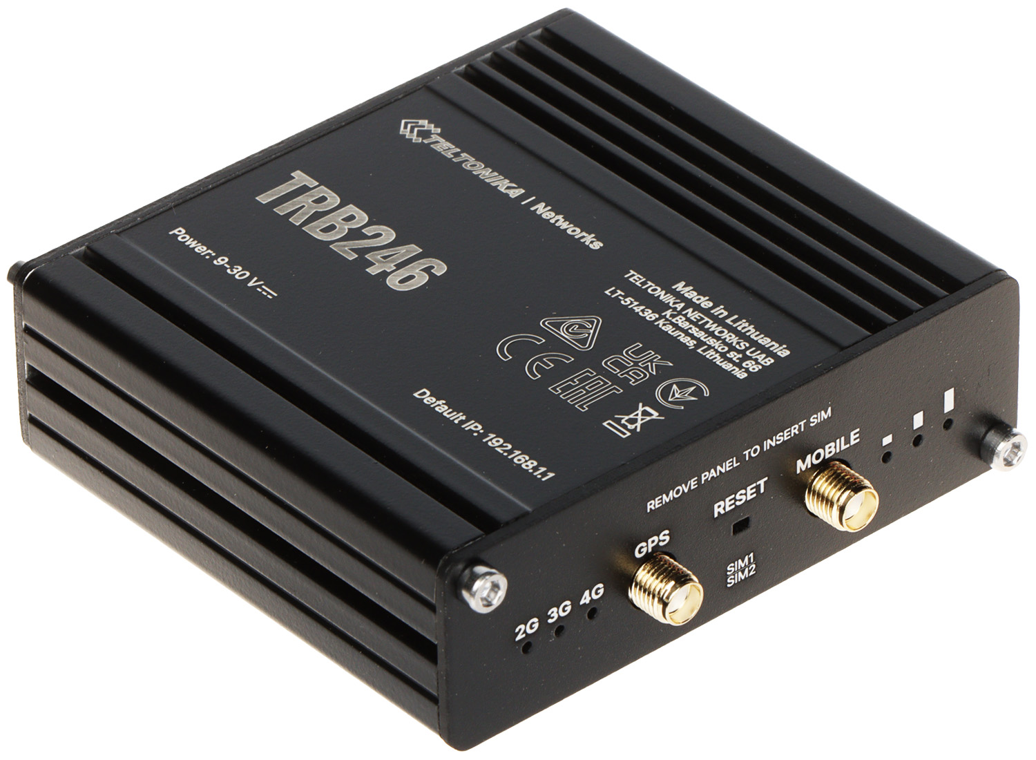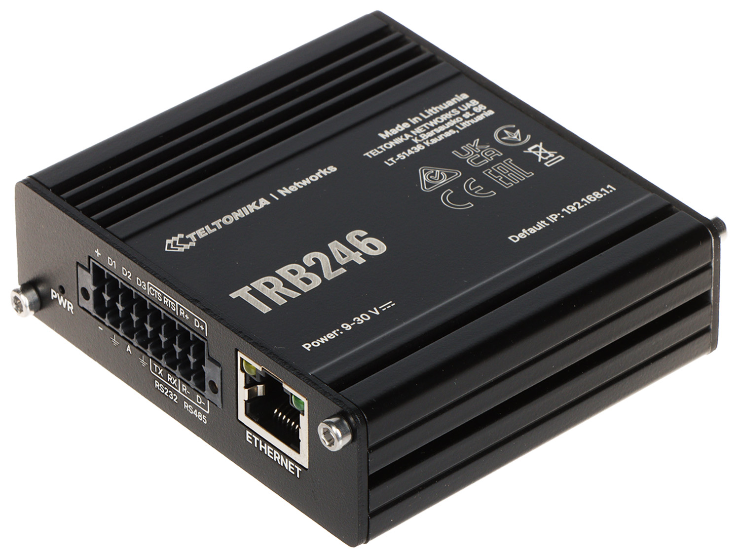 Brama sieciowa TRB246 to kompaktowa, energooszczędna, przemysłowa brama 4G/LTE, umożliwiająca podłączenie urządzenia do sieci Ethernet poprzez łącza komórkoweUrządzenie wyposażone jest w port Ethernet, 3 konfigurowalne cyfrowe wejścia/wyjścia, złącza komunikacyjne RS-232, RS-485, 2 sloty na karty SIM oraz 2 złącza SMA do anten LTE oraz GNSS (Globalnych Systemów Nawigacji Satelitarnej)Urządzenie jest zgodne z technologią IoT (Internet rzeczy)