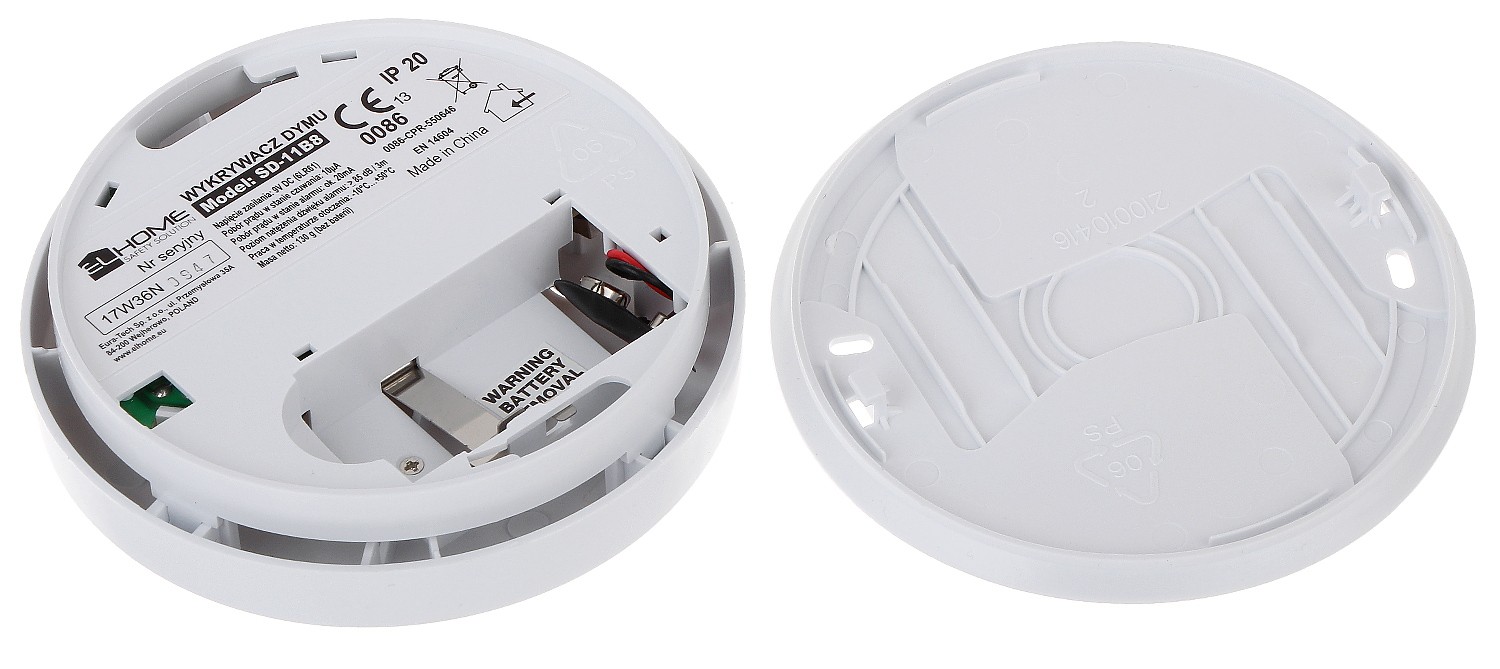 | Wybrane cechy: | Sygnalizacja dźwiękowa 85 dB / 3 m Przycisk Test Alarm niskiego poziomu baterii Detekcja max. 25 m² |