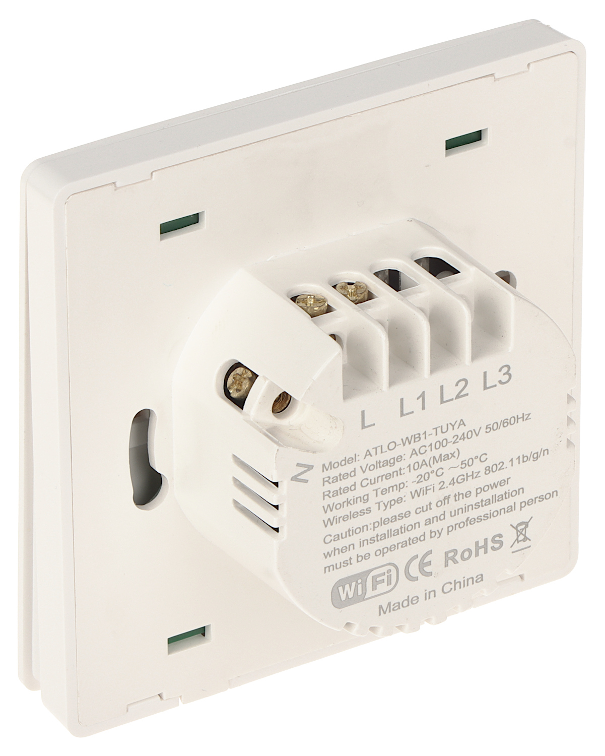 Przełącznik ATLO-WB1-TUYA umożliwia włączanie i wyłączanie oświetlenia bezprzewodowo poprzez aplikację lub przez naciśnięcie przyciskuDo prawidłowego funkcjonowania urządzenia niezbędne jest połączenie go z siecią Wi-Fi z dostępem do Internetu