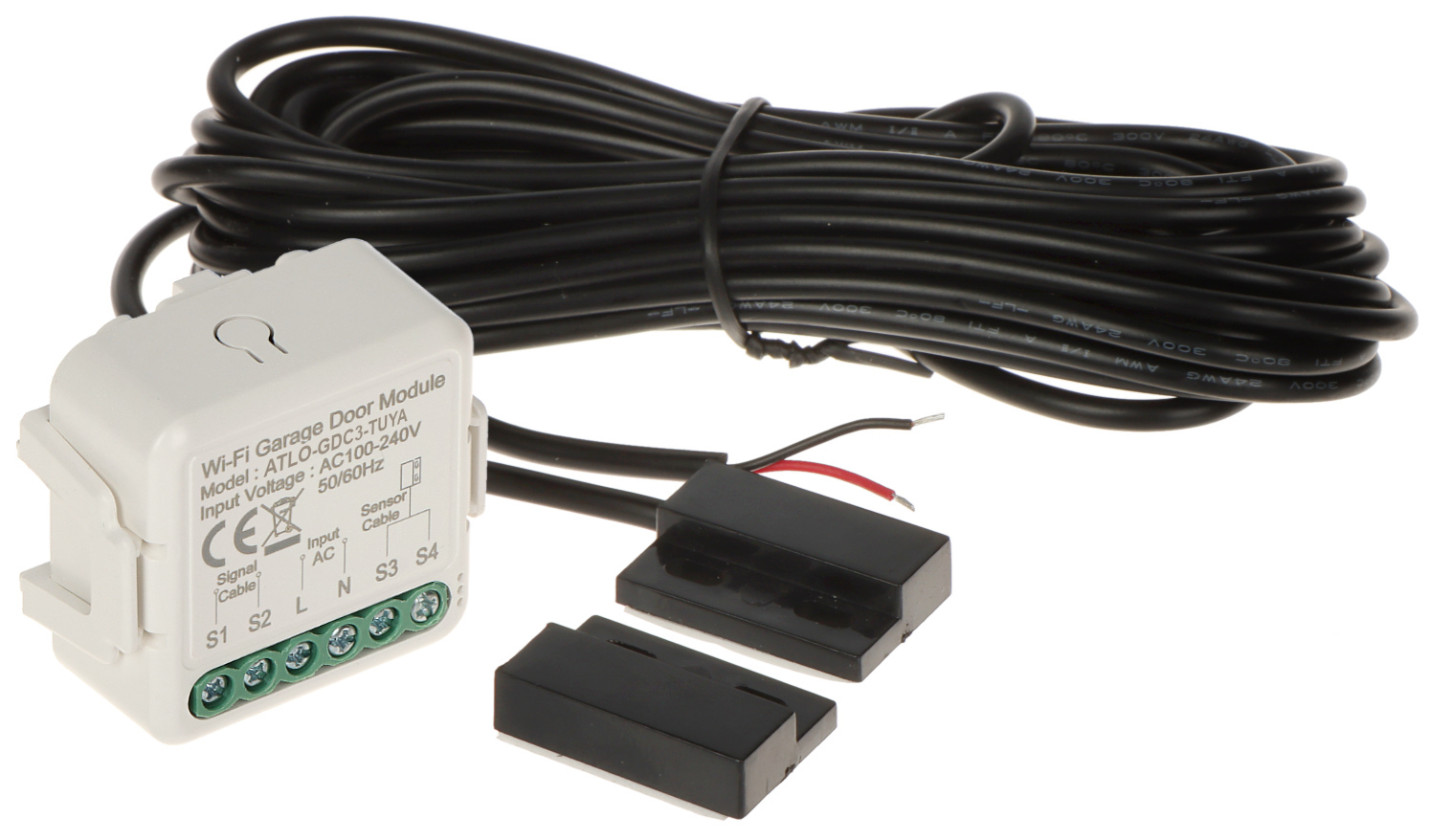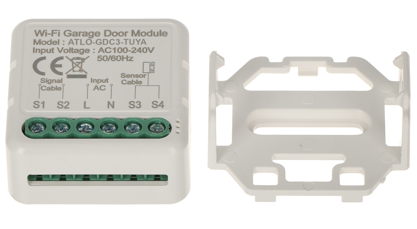 Sterownik ATLO-GDC3-TUYA umożliwia otwarcie lub zamknięcie bramy garażowej oraz potwierdzenie w jakim stanie się znajdujeDo prawidłowego funkcjonowania urządzenia niezbędne jest połączenie go z siecią Wi-Fi z dostępem do Internetu