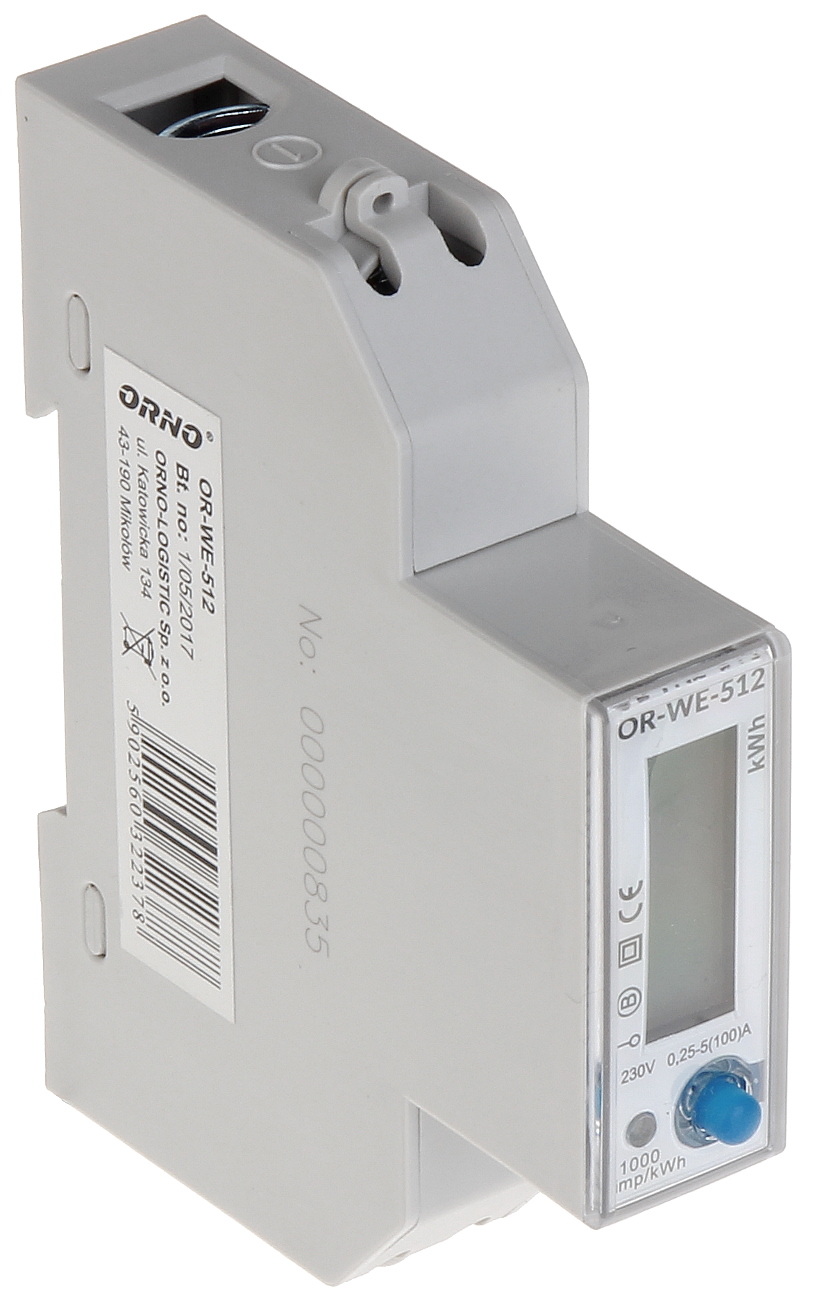 Jednofazowy licznik energii elektrycznejUrządzenie OR-WE-512 przewidziane jest do montażu na szynie DIN TS-35
