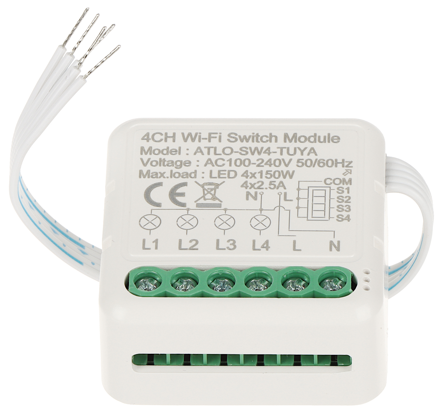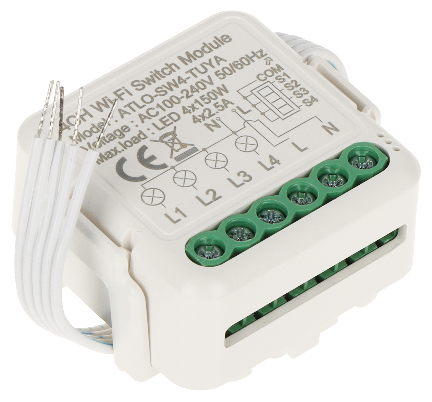 Sterownik ATLO-SW4-TUYA umożliwia sterowanie oświetleniem LED bezprzewodowo poprzez aplikację lub przez podłączony przyciskDo prawidłowego funkcjonowania urządzenia niezbędne jest połączenie go z siecią Wi-Fi z dostępem do InternetuW przypadku braku Wi-Fi urządzenie może być sterowane lokalnie przez Bluetooth (wcześniej musi zostać dodane do platformy Tuya za pomocą Wi-Fi z dostępem do sieci Internet).