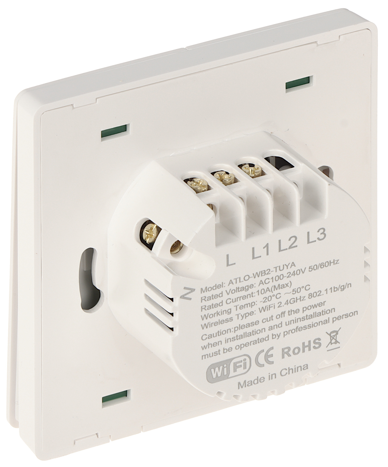 Przełącznik ATLO-WB2-TUYA umożliwia włączanie i wyłączanie oświetlenia bezprzewodowo poprzez aplikację lub przez naciśnięcie przyciskuDo prawidłowego funkcjonowania urządzenia niezbędne jest połączenie go z siecią Wi-Fi z dostępem do Internetu