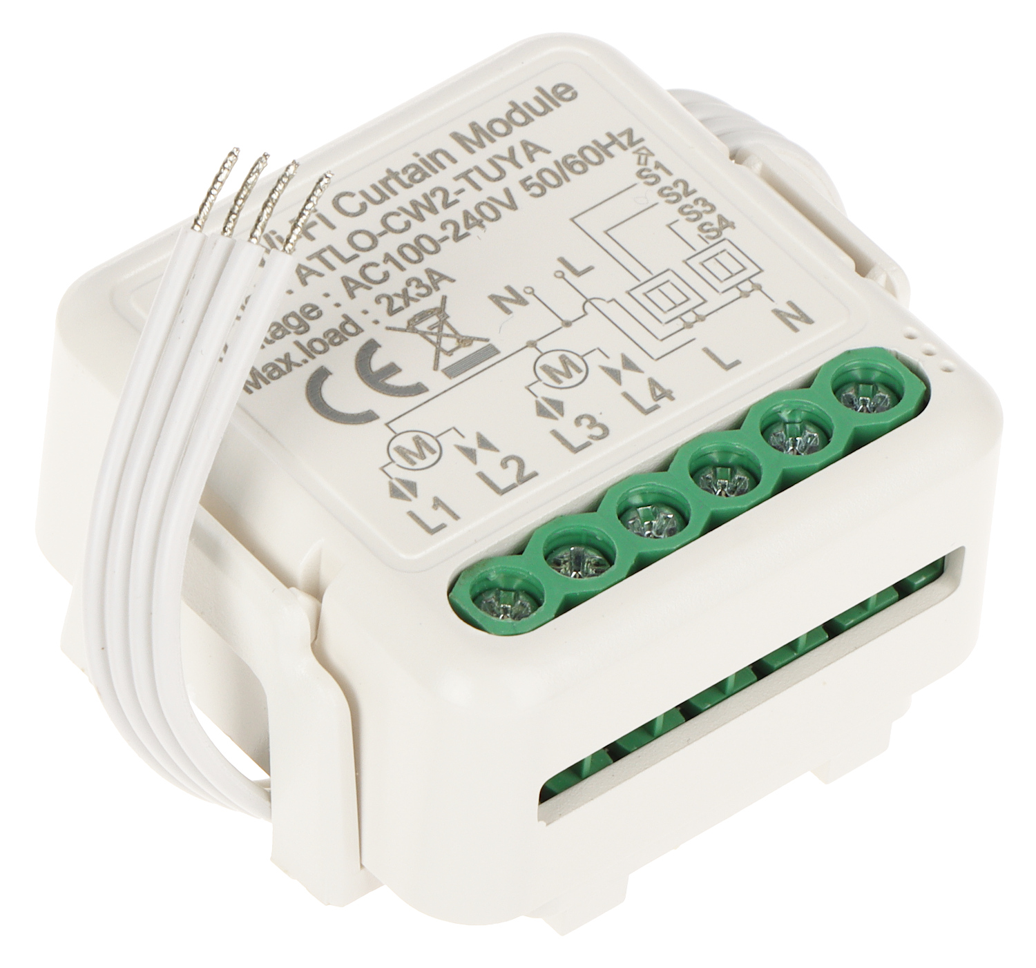 Sterownik ATLO-CW2-TUYA umożliwia zdalne sterowanie roletami z ustaleniem określonej pozycji zatrzymania roletDo prawidłowego funkcjonowania urządzenia niezbędne jest połączenie go z siecią Wi-Fi z dostępem do Internetu