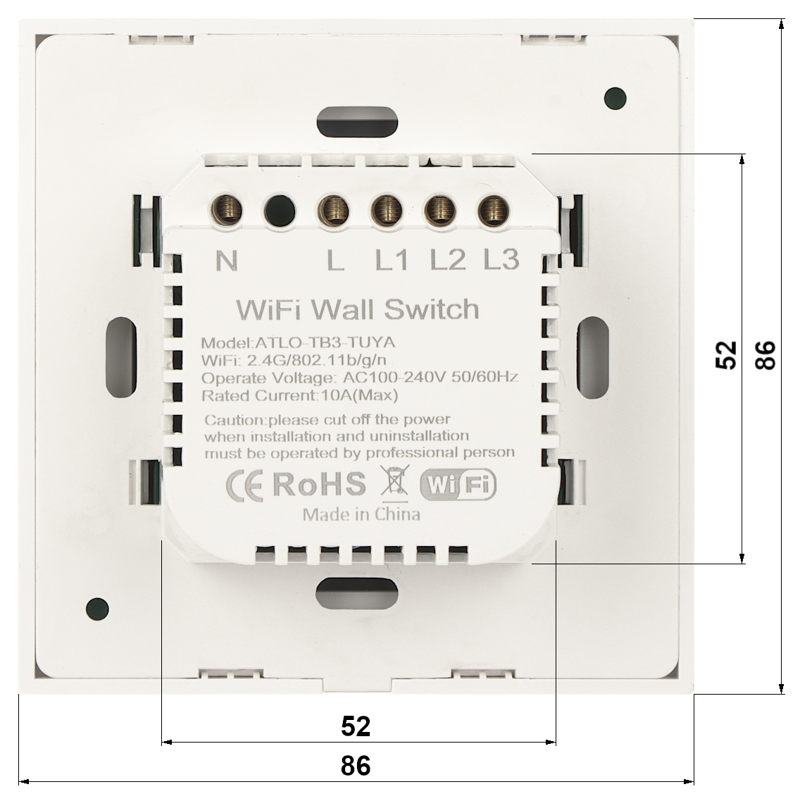Uwaga!Produkt nie pasuje do standardowych puszek montażowych o średnicy 60 mmDo poprawnego działania wymagane jest doprowadzenie przewodu neutralnego do przełącznika