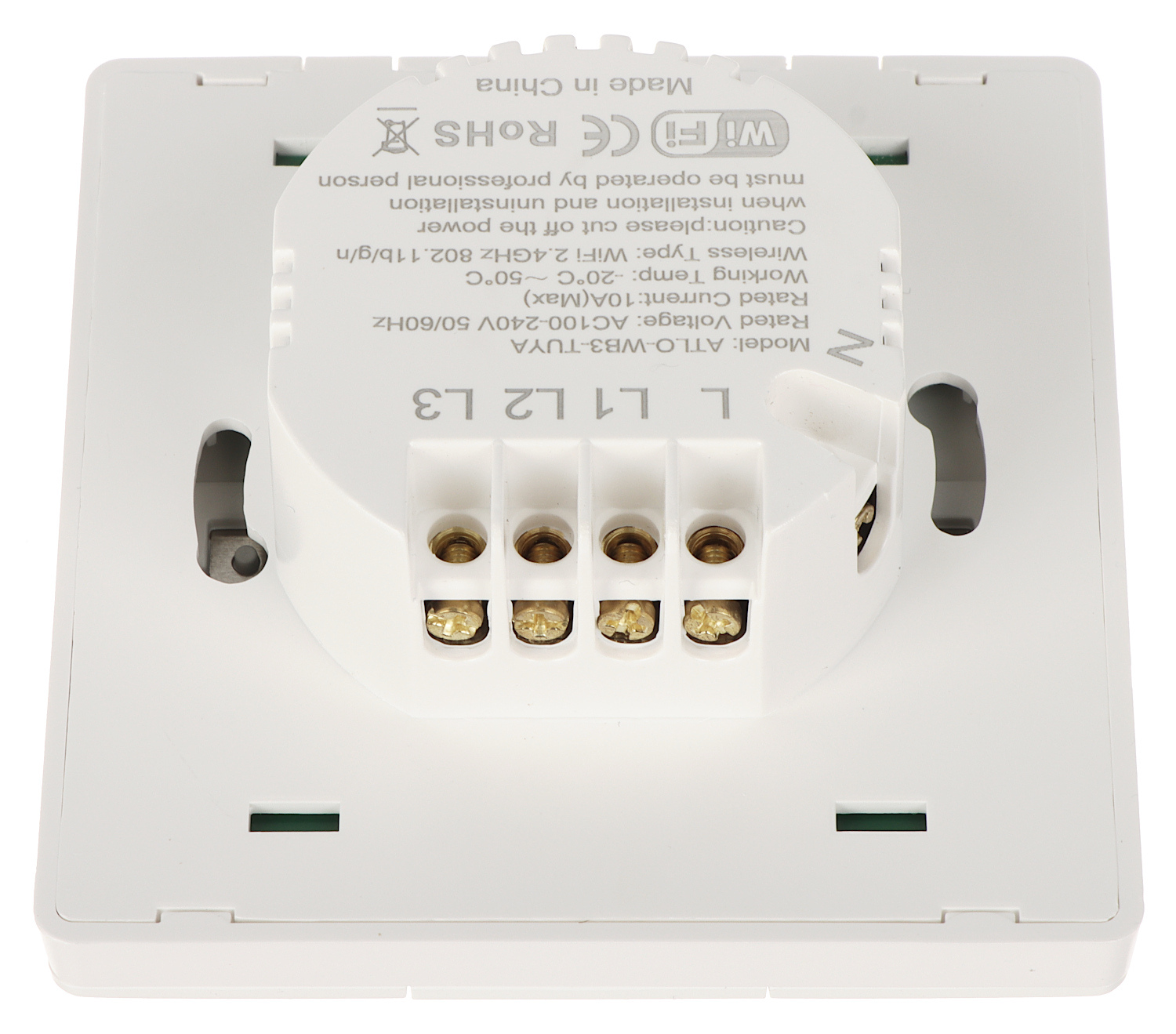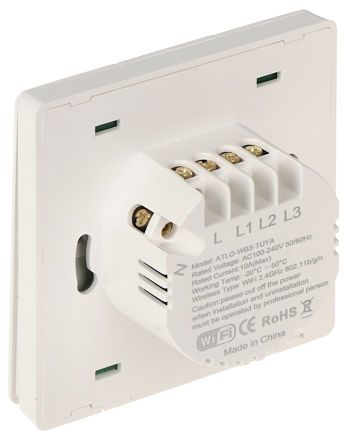 Przełącznik ATLO-WB3-TUYA umożliwia włączanie i wyłączanie oświetlenia bezprzewodowo poprzez aplikację lub przez naciśnięcie przyciskuDo prawidłowego funkcjonowania urządzenia niezbędne jest połączenie go z siecią Wi-Fi z dostępem do Internetu