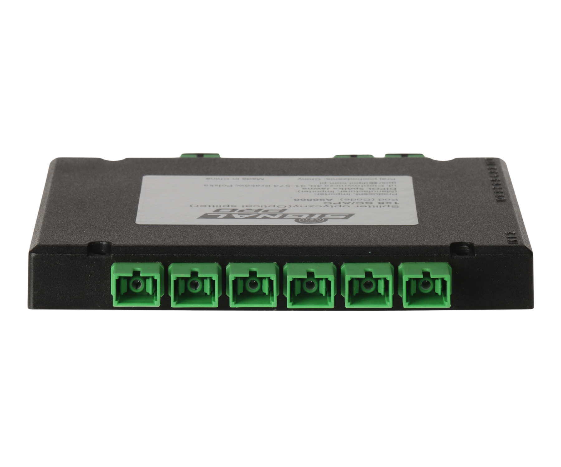 Splitter optyczny SO-1/8-SC/APC-SIG służy do podziału sygnału optycznego na 8 torów w instalacjach światłowodowych, m.in. w systemach dystrybucji TV opartych o urządzenia SIGNAL PRO. Zastosowano złącza SC/APC oraz obudowę typu BOX, ułatwiającą montaż w typowych szafkach RTV bez potrzeby stosowania przełącznic i dodatkowych adapterów. Splitter pracuje w paśmie 1260-1650 nm, a maksymalne tłumienie wynosi 10.5 dB.