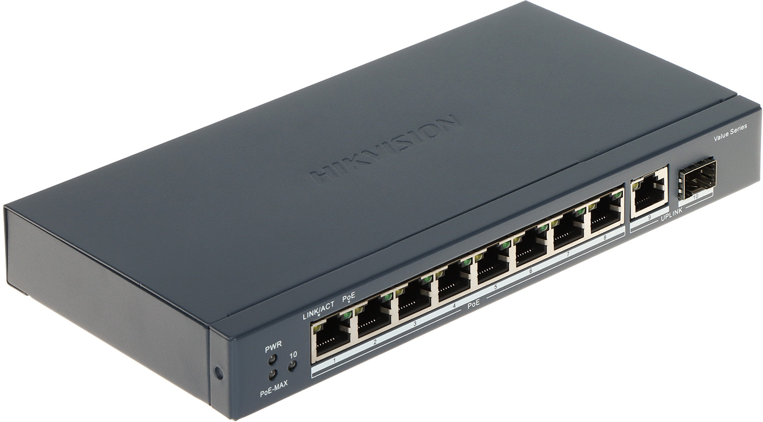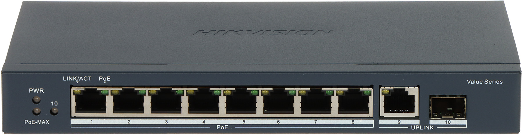 | Porty LAN: | 8 x RJ45 ( 8 x PoE (802.3af/at) ), 1 x RJ45 (Uplink), 1 x SFP (Uplink) |