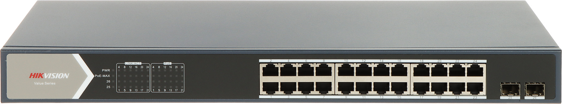 Switch PoE DS-3E0526P-E/M to urządzenie typu przemysłowego zapewniające płynną transmisję sieciową z prędkością 1000 Mbps