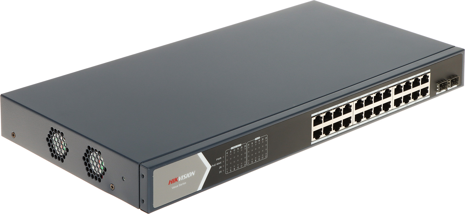 | Porty LAN: | 24 x RJ45 ( 24 x PoE (802.3af/at) ), 2 x SFP (Uplink) |