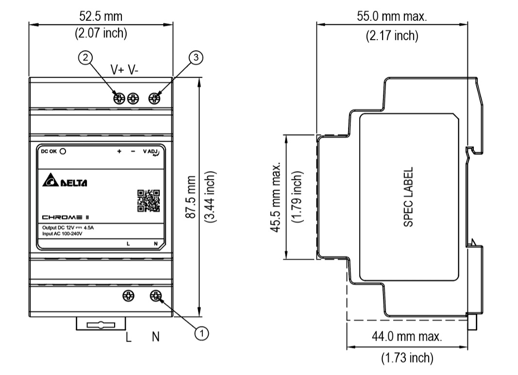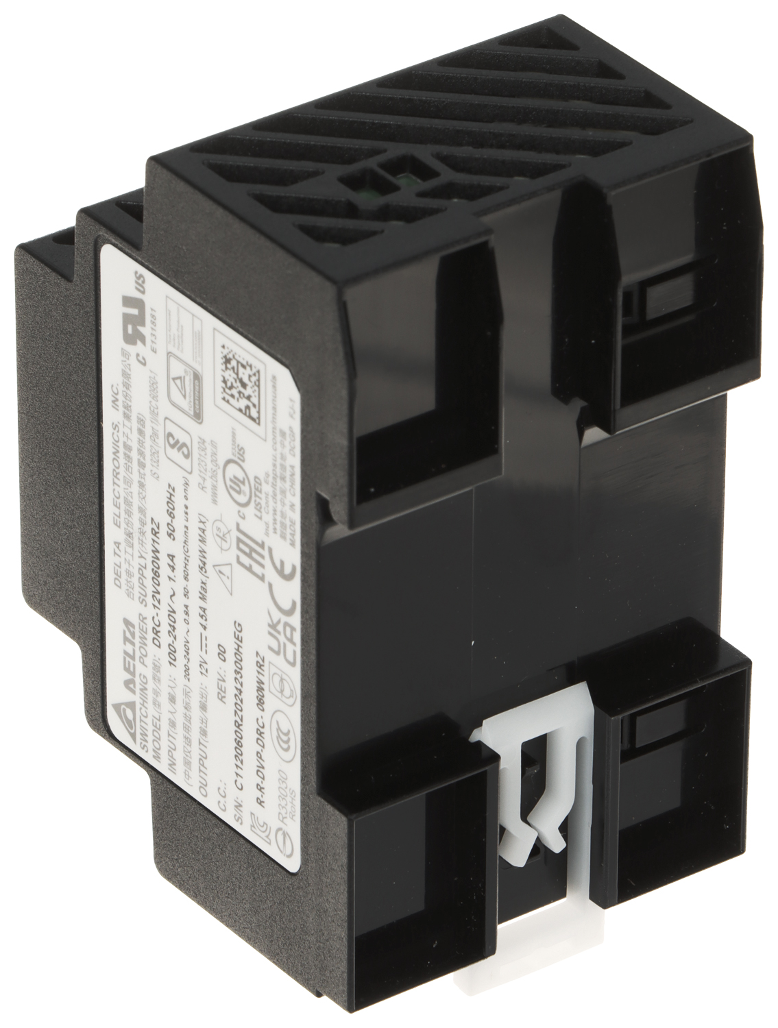 Zasilacz impulsowy instalowany na szynie TS35/7.5 lub 15 DIN, odporny na wysokie temperatury pracy (do 70°C)
