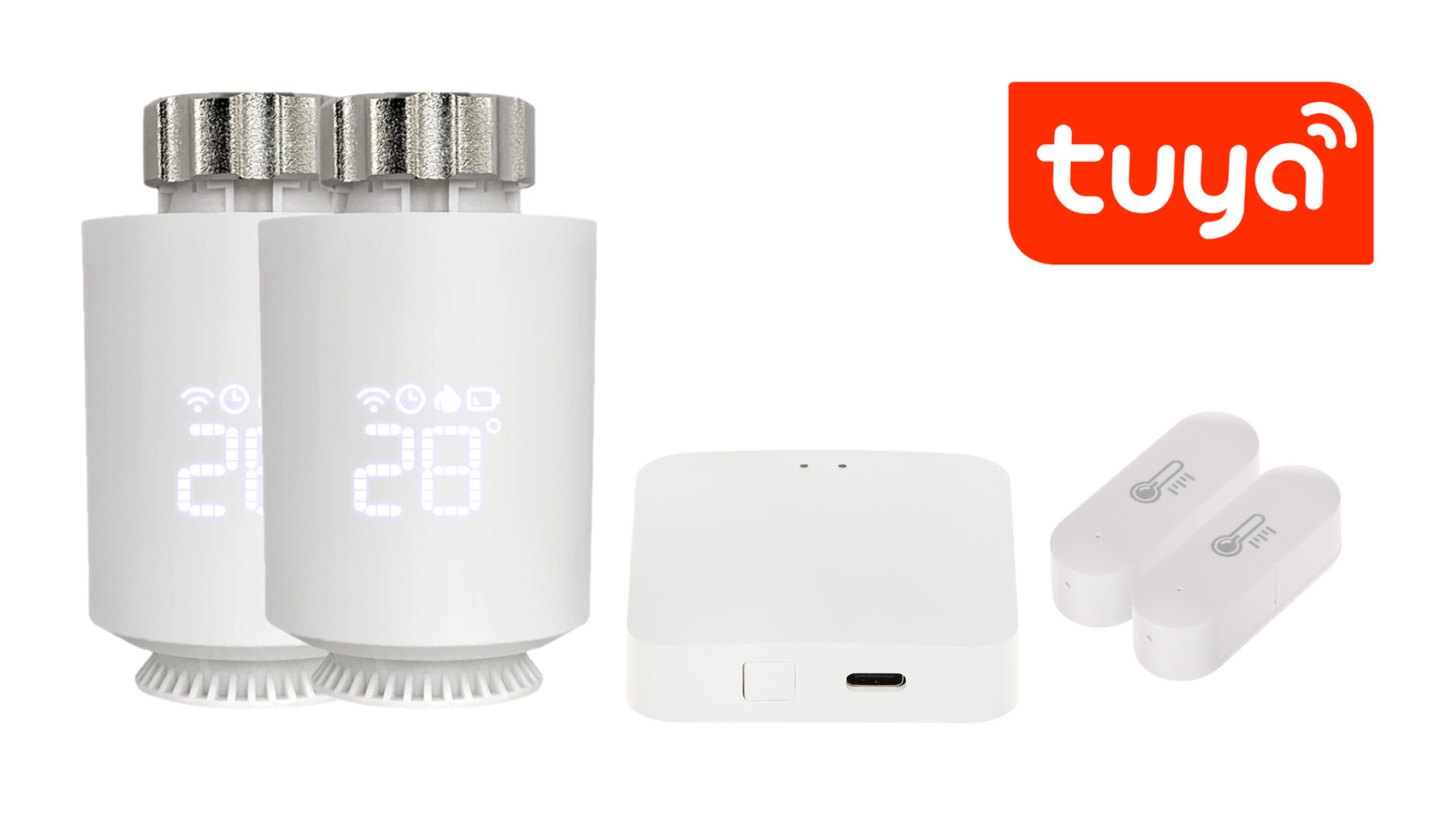 Zestaw 2 inteligentnych głowic termostatycznych z 2 czujkami temperatury oraz bramką ZigBee